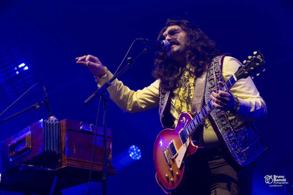 Karma Sheen, c’est la longue ligne droite hypnotique, s’inspirant d’une esthétique rétro à la Led Zep ou Jimi Hendrix, sorte de cocktail à base de hindoustani chamanique, de rock fuzzy, de néo-psychédélique planant et d’indie-pop chaleureuse. Sous la direction de Sameer Khan, sitar, thérémine et guitares, forment des grooves circulaires aux ambiances multiples tout comme les influences, par moments trop évidentes, mais l’ensemble reste séduisant justement pour ce mélange de rock occidental et de musique traditionnelle. On pense forcément à Altın Gün ou King Gizzard. Qu’importe, l’ADN est cool et Hall 8 la communion avec le public est quasiment immédiate. On entre dans cette fameuse zone abstraite où il n’est pas toujours facile d’être objectif sans tomber dans une sorte de mécanique trop expéditive. Savoir savourer l’instant sans trop réfléchir, c’est important pour ne pas avoir le sentiment, à la fin, de ne rien ressentir vraiment intensément.