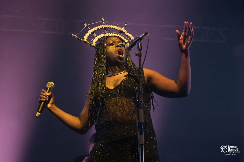 Le trompettiste nigérian Etuk Ubong et son collectif, un cocktail militant de jazz, d’afrobeat et de rythmiques ekombi effrénées. Cette « Earth Music », comme il aime à la nommer, est à l’évidence hyper fédératrice et ses morceaux « Africa Today » empreinte de bienveillance, de paix et d’amour sonnent le moment idéal où la fête empêche la nuit de nous mordre trop profondément. Rythmes cuivrés en spirale cosmique : cette afro-groove contemporaine envahit le Hall 8, et le public en apesanteur devient un seul corps en mouvement. On est ensemble, on danse ensemble, on tient ensemble jusqu’au final.