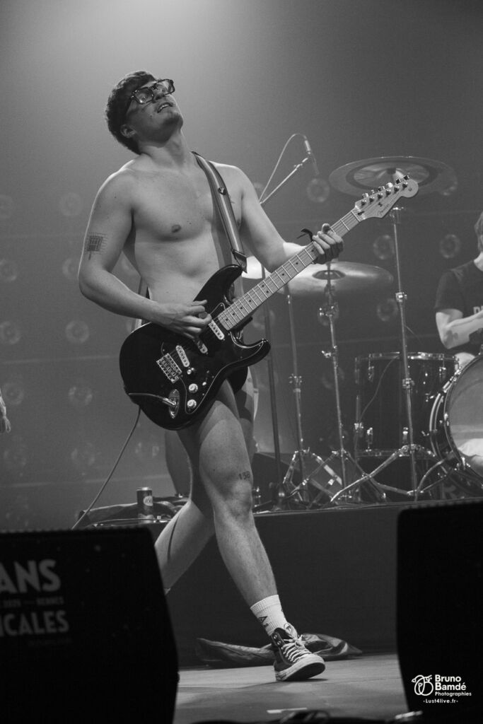 Retour au punk rock et à la cavalcade sonore avec le groupe néerlandais L.A. Sagne. D’emblée, la chanteuse Tara Wilts en impose par son chant hyperpuissant. Ajoutons la maestria mélodique du combo guitare, basse, batterie et les hymnes « I’m a Girl » et « I Paint Walls » font des ravages… Justement, son vaillant guitariste joue de son instrument avec fougue et pour ajouter un striptease à la performance. L’effet est discutable pour certains, remarquable pour d’autres (pour ma part le combo baskets All Star et chaussettes blanches est une faute de goût dommageable… ahah!) mais passons cet effet de manchette. C’est de la pure vibe. Vivement leur premier album, dont la sortie est prévue en avril 2026…