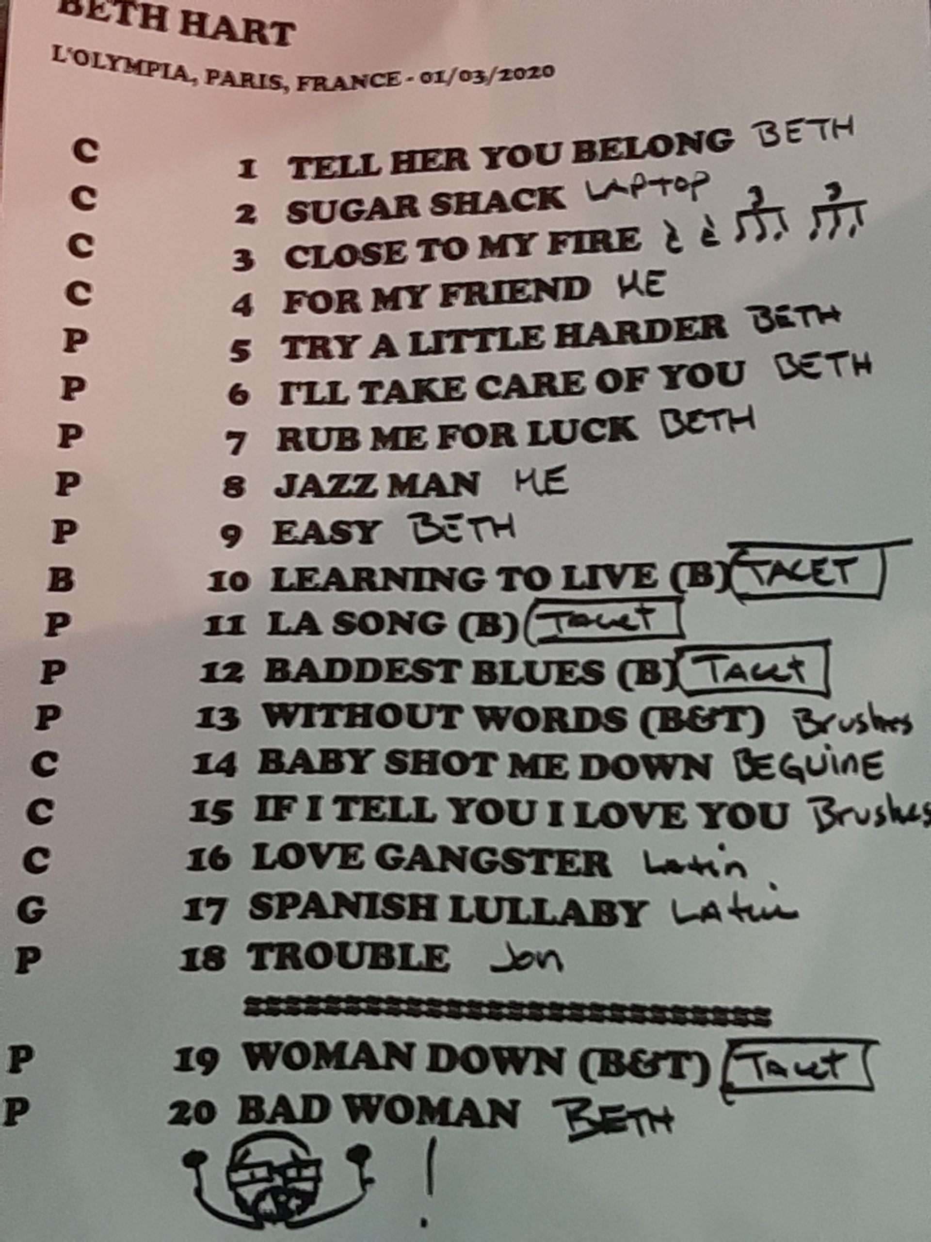 The dear friend Jean-Pierre C., an absolute fan of Beth Hart (he attended to not less than 29 Beth’s gigs !), slips me in the ear at the end of the gig that he has just received a big slap in the face. I remain mouth-to-mouth, amazed, glued, « slammed to the floor » (according to the fashionable expression of my teens), amazed by so much beauty, majesty and maestria. I realize how fortunate I am to have lived this rare and unique moment.