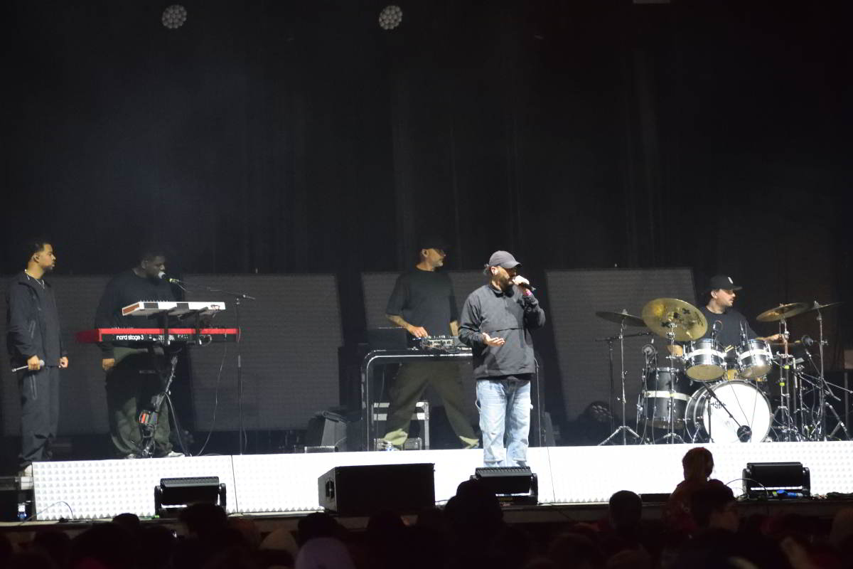 Je ne sais pas si on peut considérer mon concert comme du rap sur scène. C’est musical. Il y a de l’électro car le jeune Cédric qui a produit l’album est un touche-à-tout multi-instrumentiste. Il s’inspire de plein de choses. Sur « Effet de surplomb », il y a des influences sud-africaines, beaucoup d’électro, du rap. On mélange un peu tout ça. On est un band sur scène pour rendre tout ça hyper musical et sortir du truc rap car c’est mon mode d’expression. Moi, je chante un tout petit peu, mais Vinnie, qui est avec moi sur scène, chante beaucoup mieux que moi.