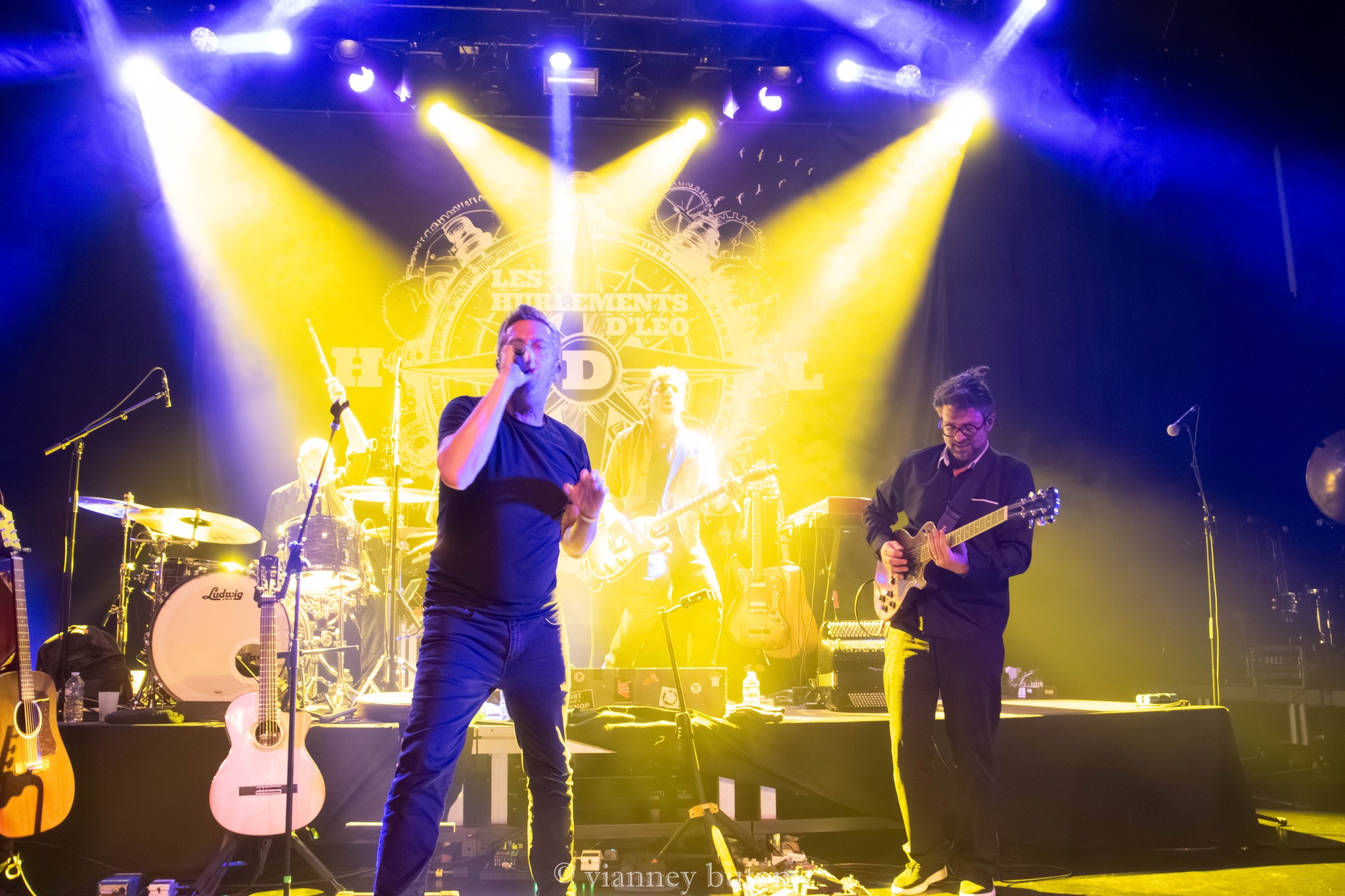 Christian et ses musiciens ( Rémy Hubert, Pierre Corneau, Goulven Hamel et Alain Richard ) entrent en scène. Malgré leurs rides, Les Nus portent bien leurs âges, mais dès que les premières notes résonnent, ce sont évidemment l’émotion et l’incroyable jeunesse des chansons qui s’imposent. Portés par l’interprétation scénique forte et soutenus par un groupe irréprochable, ces morceaux s’imposent avec une autorité, une majesté qui tranche avec quelques petites approximations, tout n’est pas encore parfait, en effet… Avant de nous rassurer en entonnant les refrains, l’inoubliables « Johnny colère« , « Les années Reagan« , ainsi que les nouveaux sommets du dernier opus « Dans la maison d’Eva » et « Suspicion« .