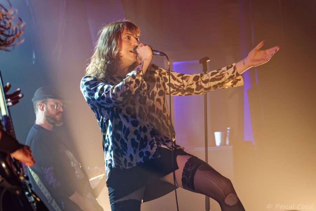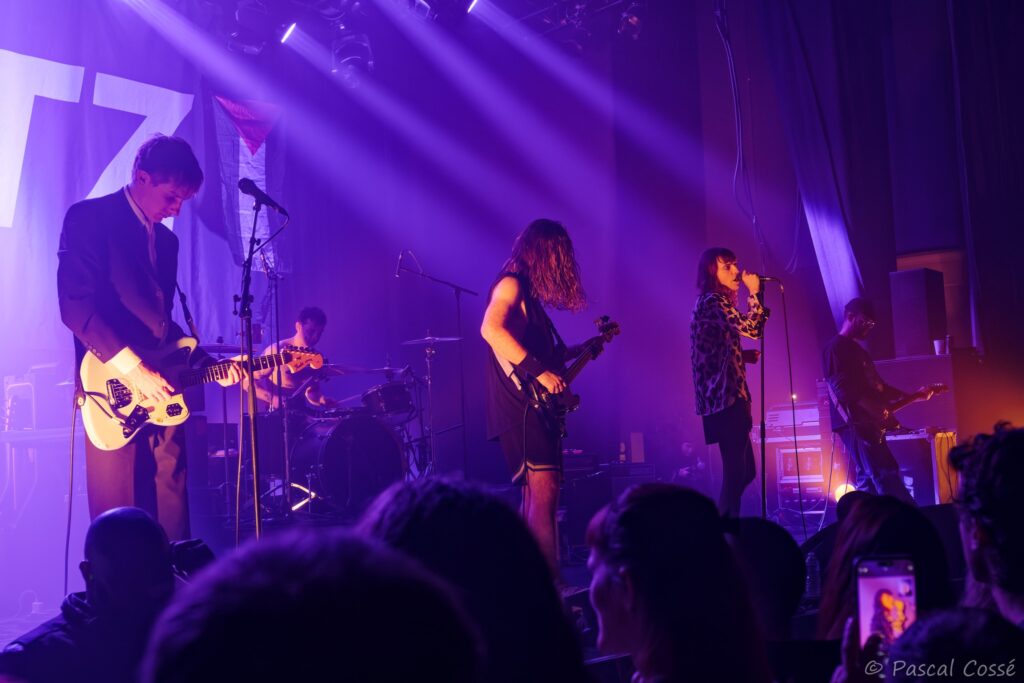 La diversité s’exprime aussi dans le dress code propre à chacun des membres avec Cal Francis, chanteur/se, en diva déglinguée avec corsage léopard, jupette et bas nylon, Caleb Remnant à la basse, le métalleux de la bande, les guitaristes Anton Mocock, parfait look shoegaze avec lunettes et casquette, et Jack Looker, en costard anthracite comme échappé d’Interpol, et enfin, le batteur, Sam Evans, torse nu pour mieux exhiber ses tatouages.