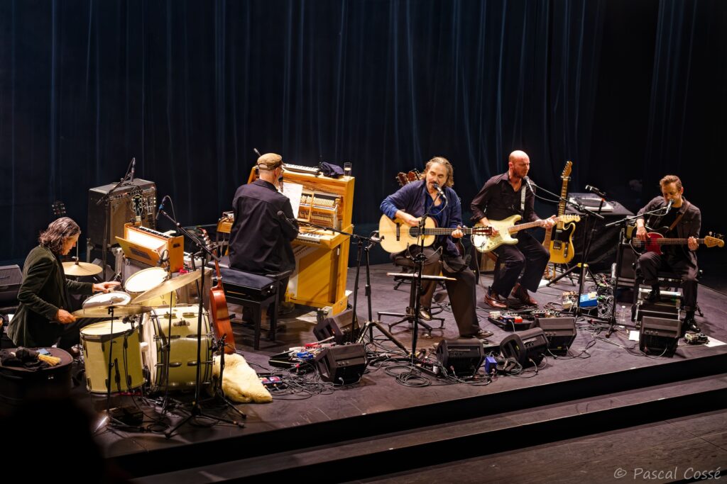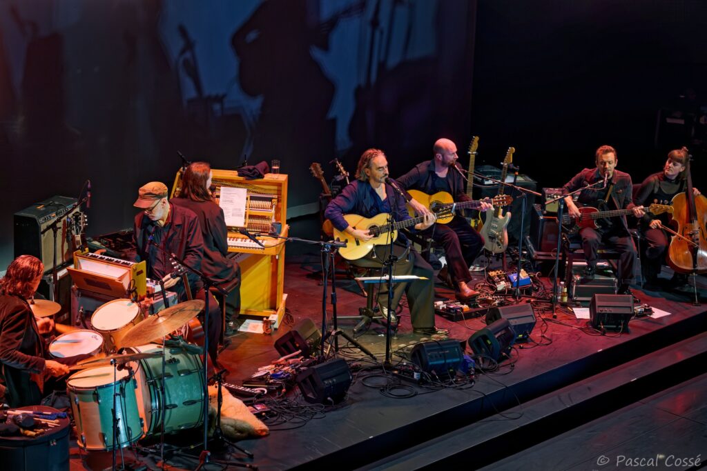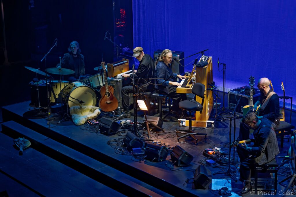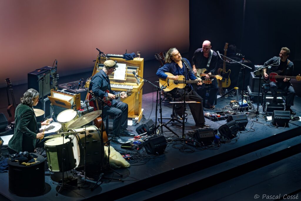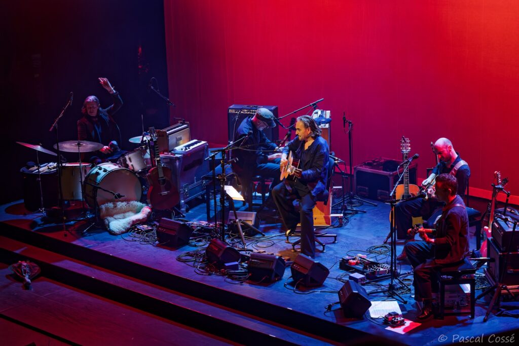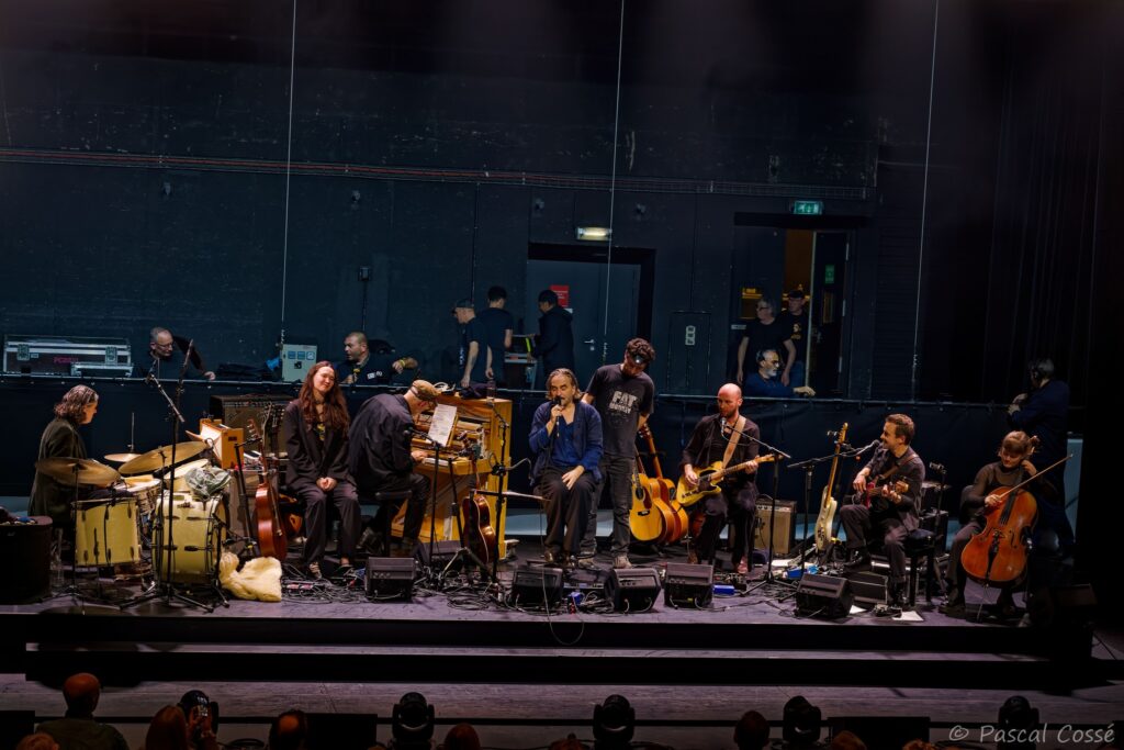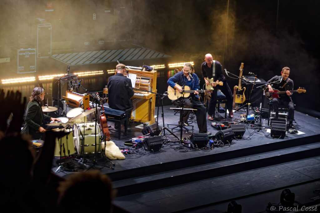 En entrant en scène, Stephan Eicher a annoncé qu’ils allaient jouer l’intégralité de « Poussière d’Or« , ce qui pouvait présager un set épuré et tout en retenue, en ligne avec des musiciens assis, tout comme l’Olympia également en version assise. Quand les sièges sont là, on ne s’attend pas à trop d’agitation…