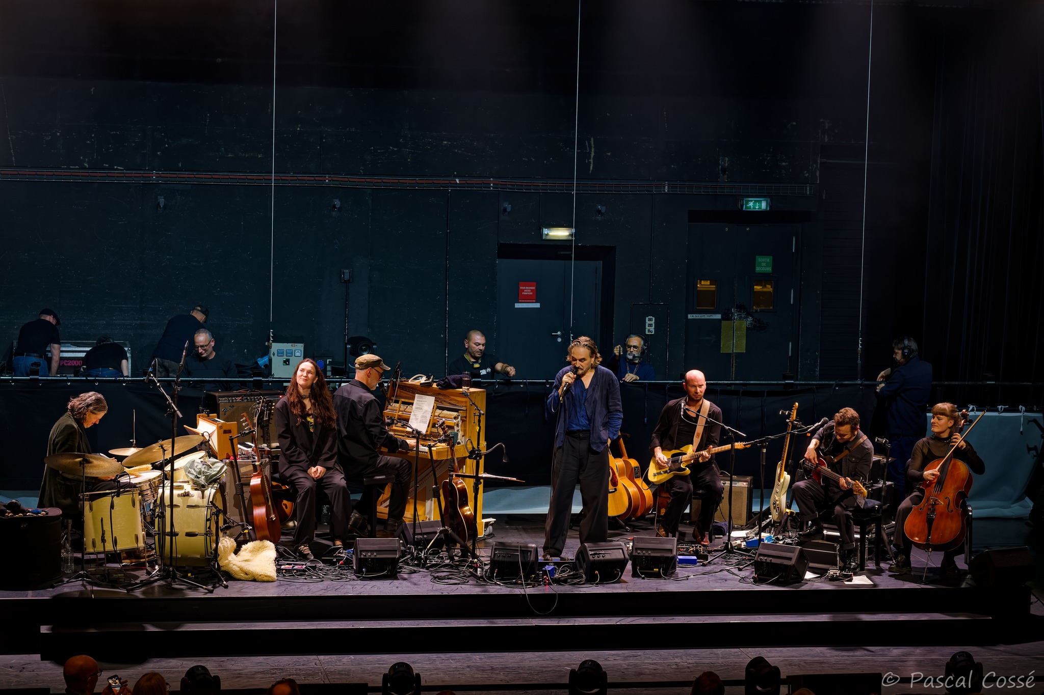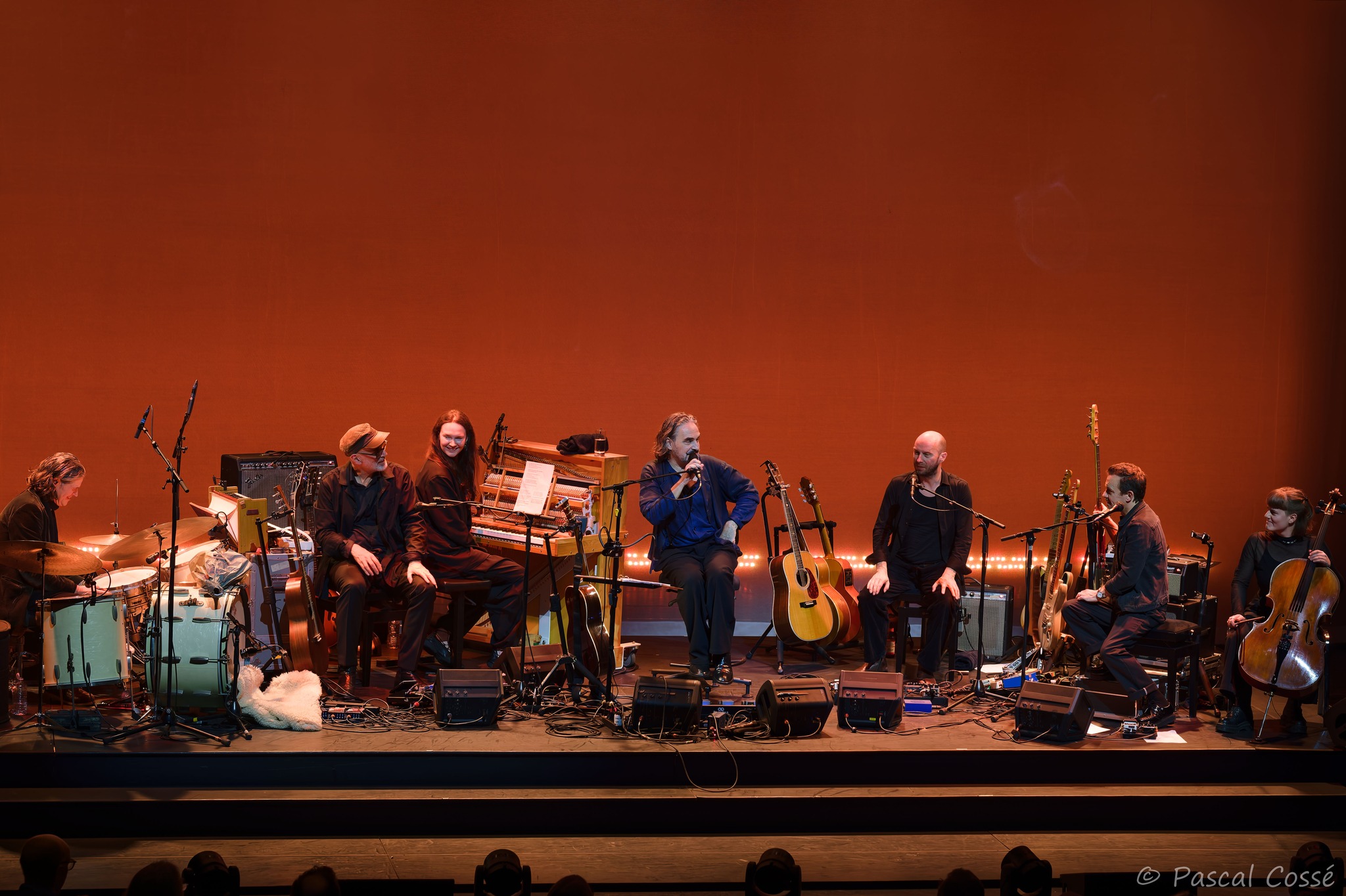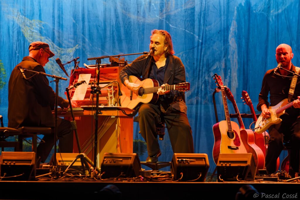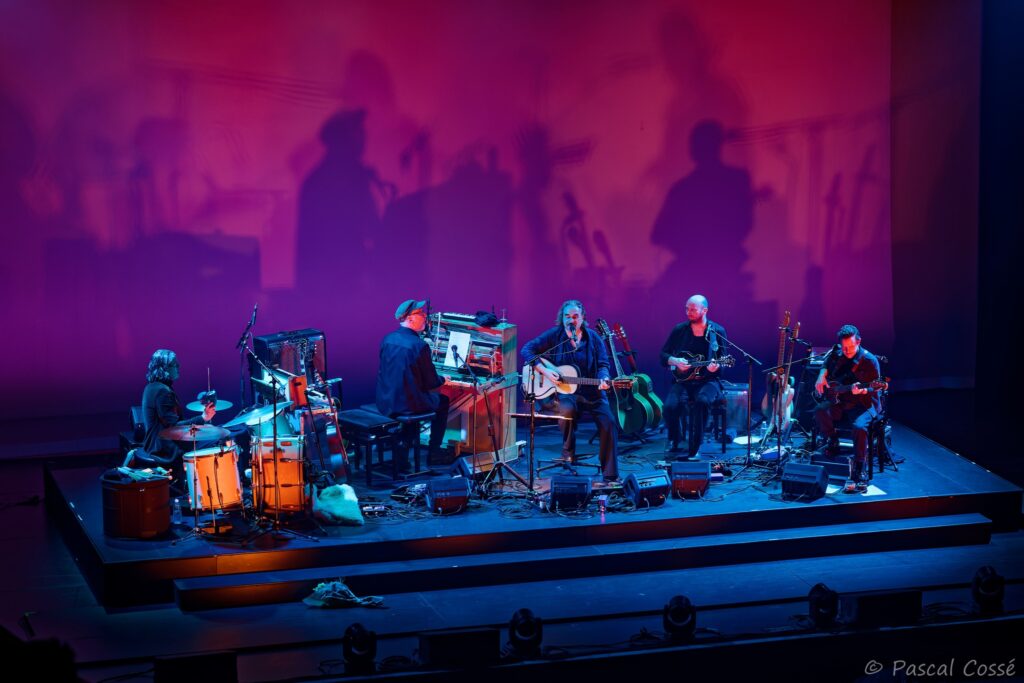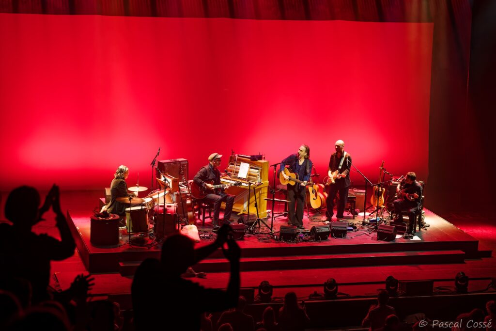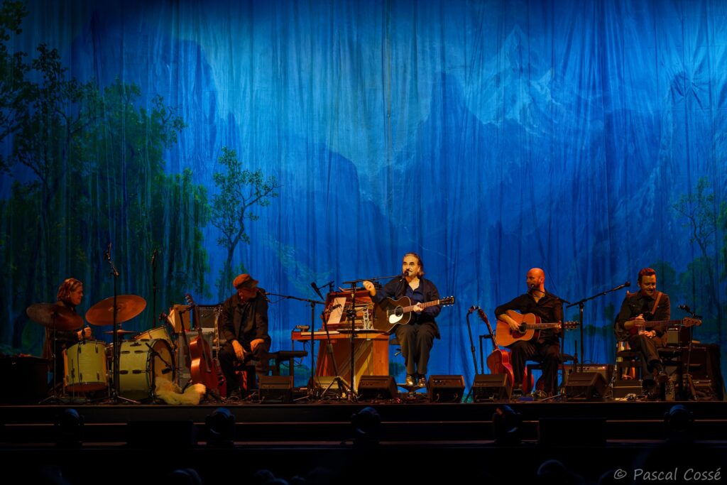 En entrant en scène, Stephan Eicher a annoncé qu’ils allaient jouer l’intégralité de « Poussière d’Or« , ce qui pouvait présager un set épuré et tout en retenue, en ligne avec des musiciens assis, tout comme l’Olympia également en version assise. Quand les sièges sont là, on ne s’attend pas à trop d’agitation…