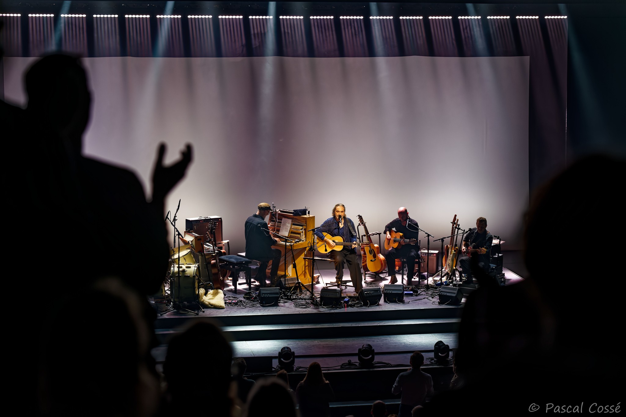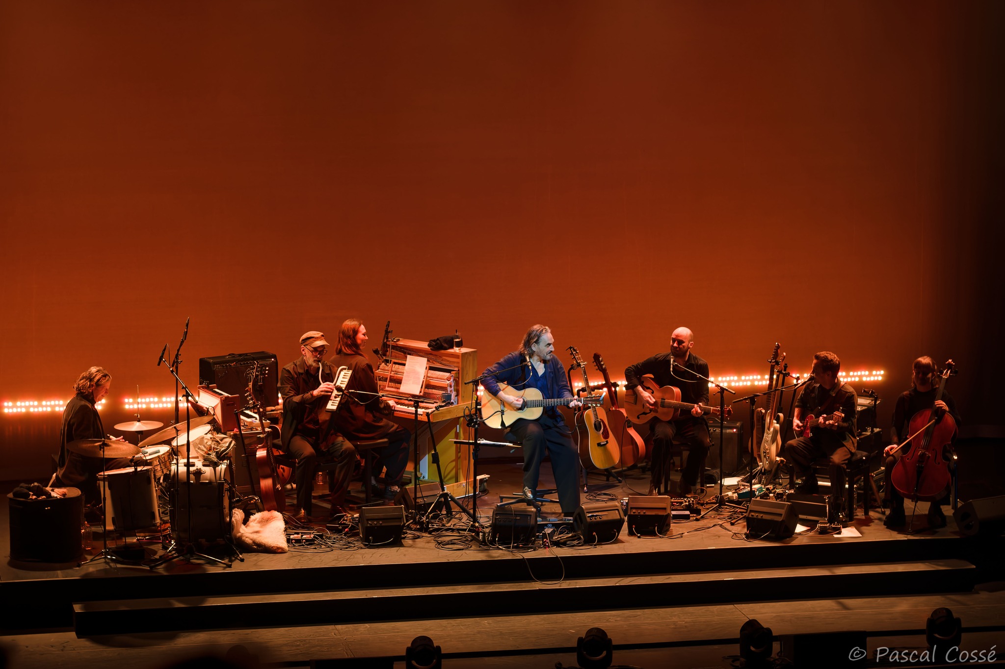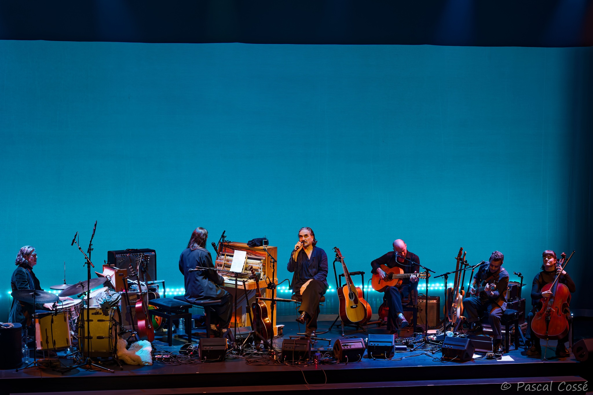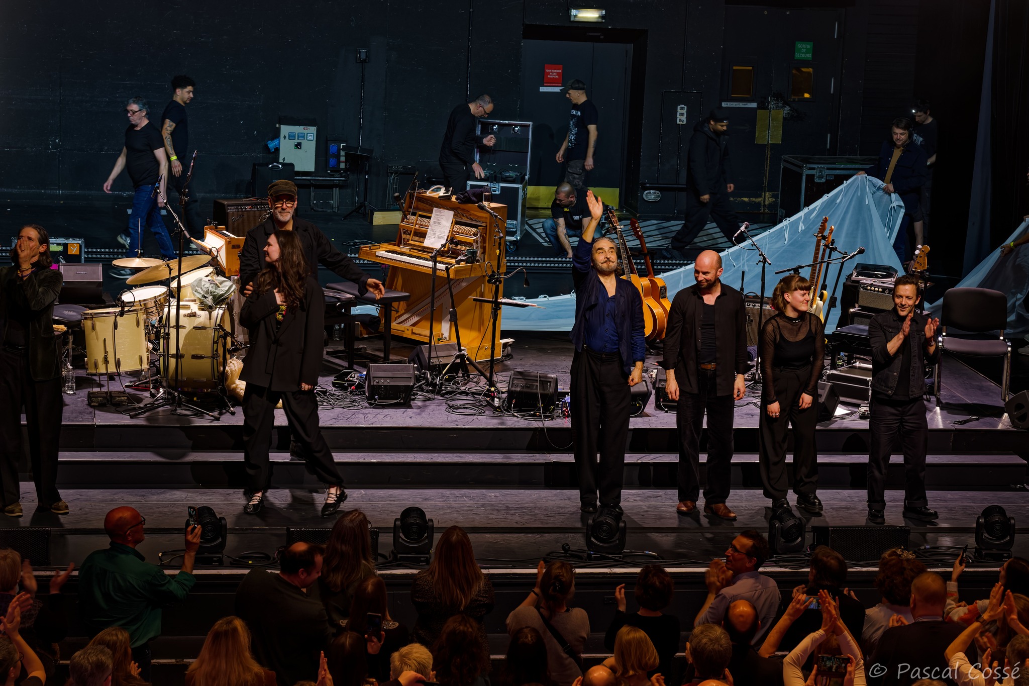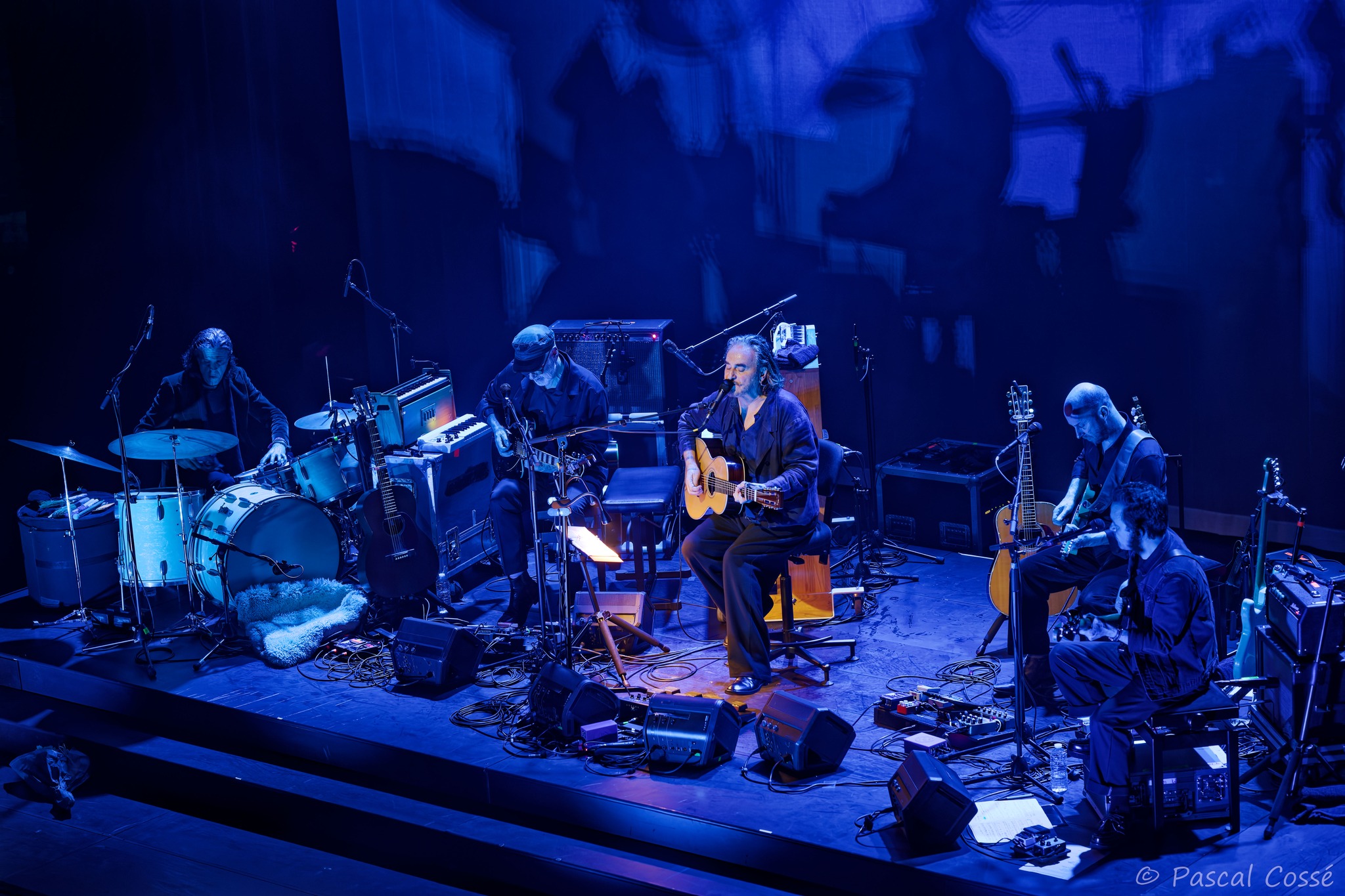 En entrant en scène, Stephan Eicher a annoncé qu’ils allaient jouer l’intégralité de « Poussière d’Or« , ce qui pouvait présager un set épuré et tout en retenue, en ligne avec des musiciens assis, tout comme l’Olympia également en version assise. Quand les sièges sont là, on ne s’attend pas à trop d’agitation…