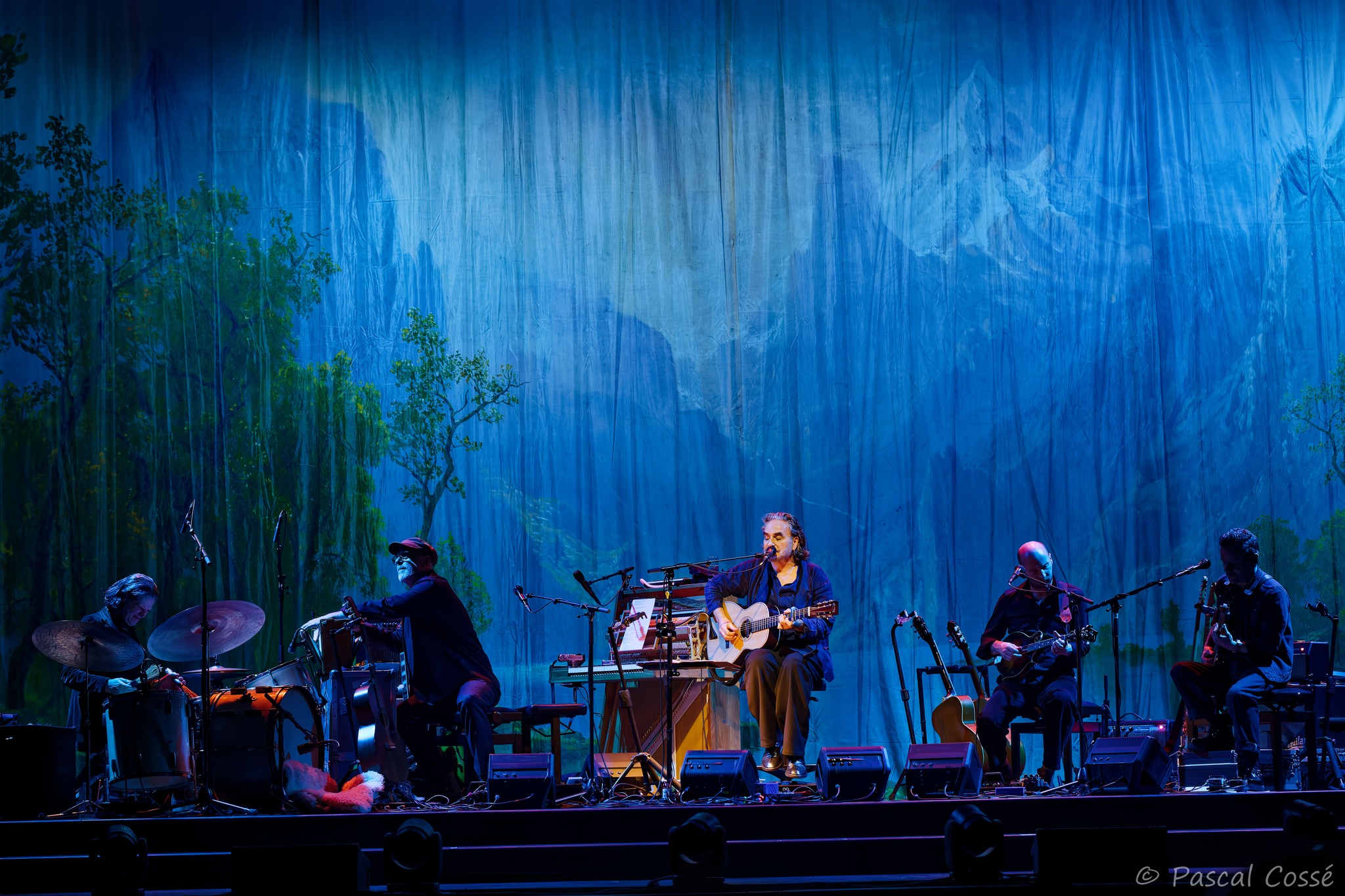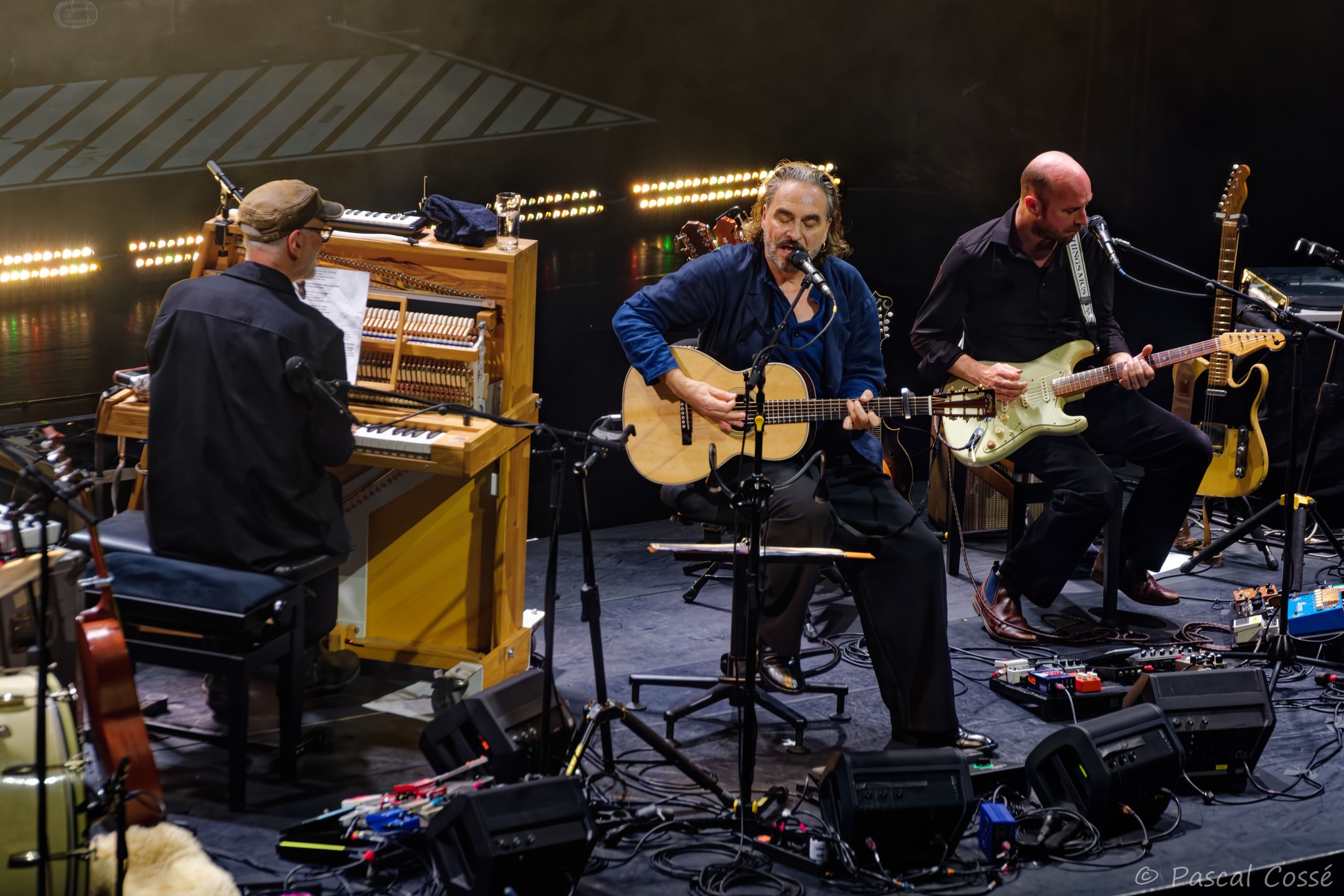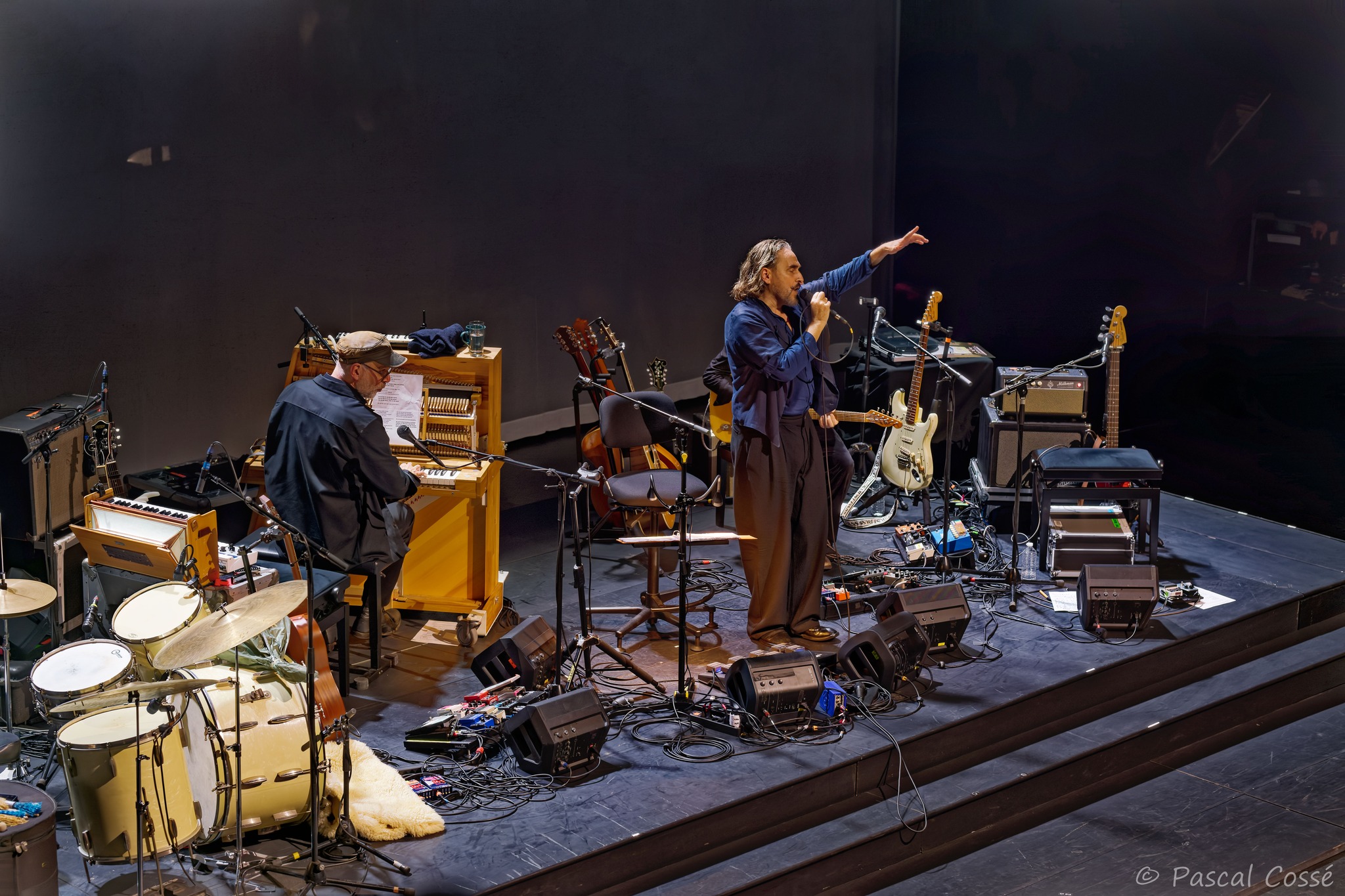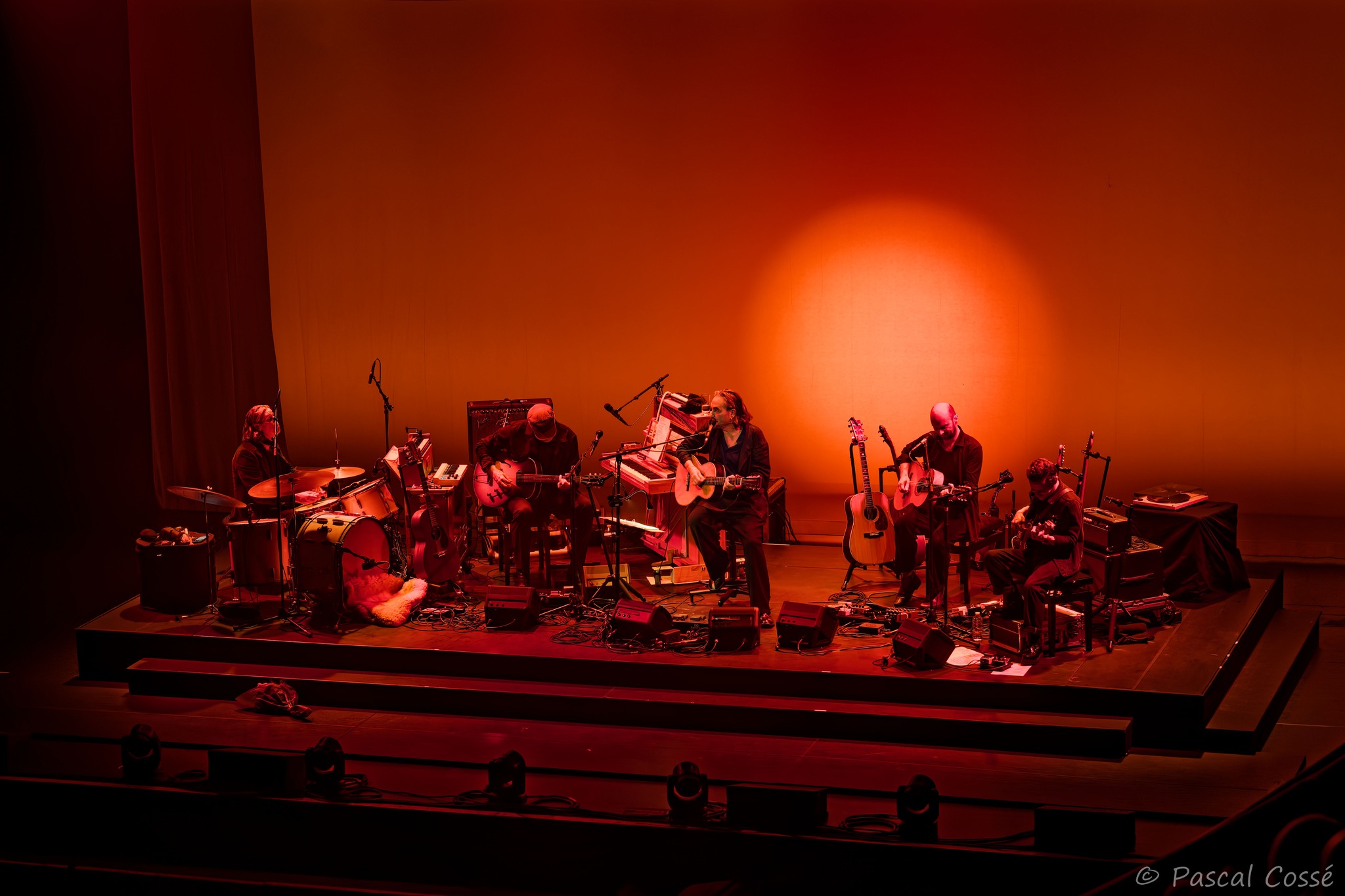 En entrant en scène, Stephan Eicher a annoncé qu’ils allaient jouer l’intégralité de « Poussière d’Or« , ce qui pouvait présager un set épuré et tout en retenue, en ligne avec des musiciens assis, tout comme l’Olympia également en version assise. Quand les sièges sont là, on ne s’attend pas à trop d’agitation…