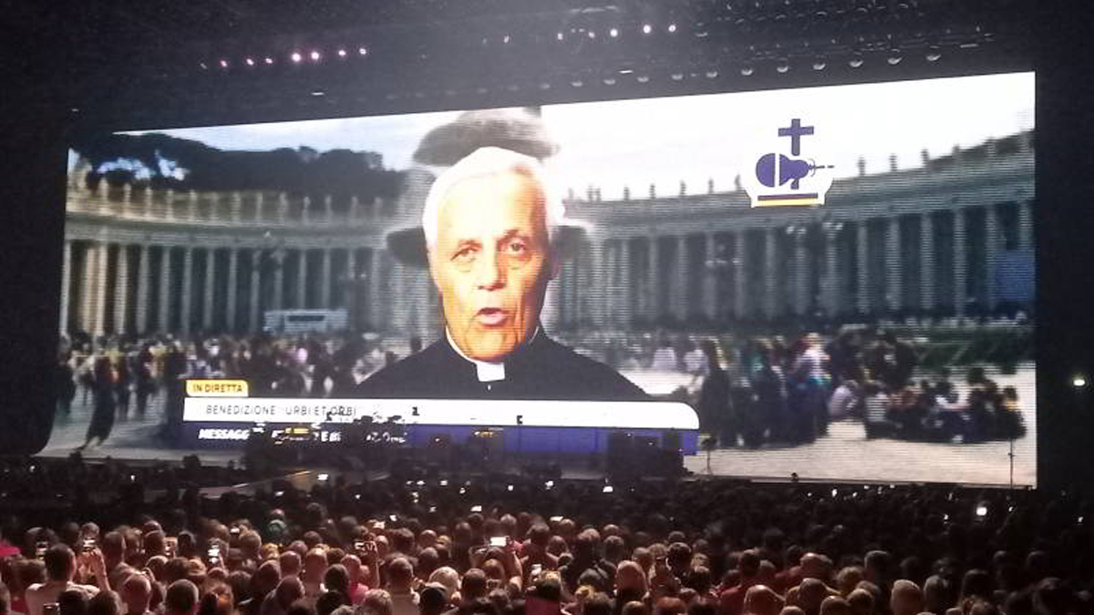 Tout commence dans le noir, puis un écran géant illumine le fond de scène. Les images défilent et font défiler une multitude d’écrans de télévisions au sein desquels des figures de personnages politiques parmi lesquels Emmanuel Macron mais aussi les maîtres du monde actuel ! Le ton est donné, Indochine a des convictions politiques et tient à mettre son public face aux grandes questions existentielles actuelles.