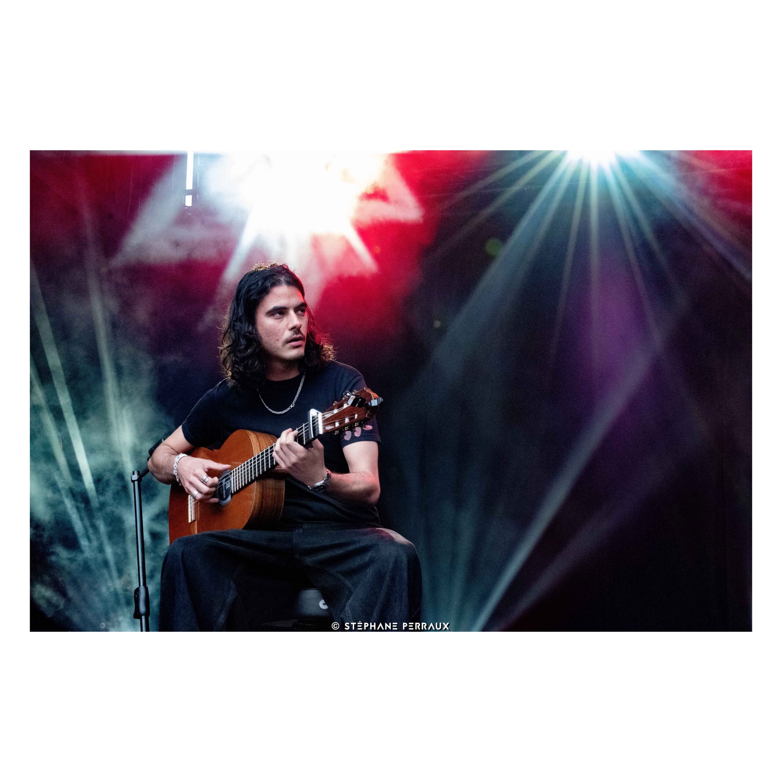 L’émotion brute dans son regard, l’énergie contenue de ses gestes, l’équilibre entre douceur acoustique et flow rap tranchant. On y sent la connexion intense avec son public, capturée dans la lumière et le son d’une Scène B aux allures de cocon en fusion.