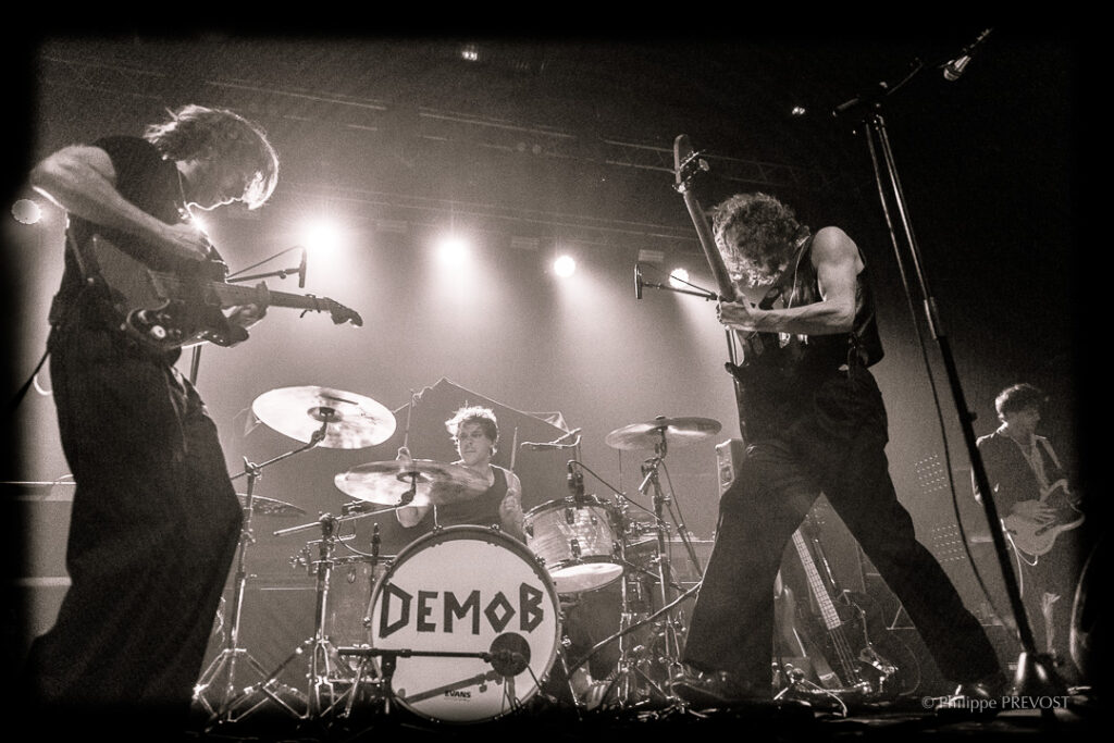 Demob Happy combo originaire de Newcastle, était en première partie de Last Train.On retrouve des influences rock alternatif survolté, nourri de hard rock 80s et de grunge 90s- un soupçon de Queens of the Stone Age, une touche de glam et un don incontestable pour la mélodie. Parfait pour chauffer la salle de Rock School Barbey.