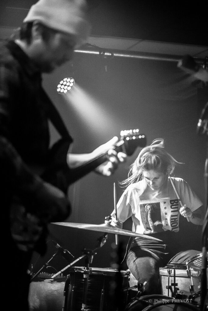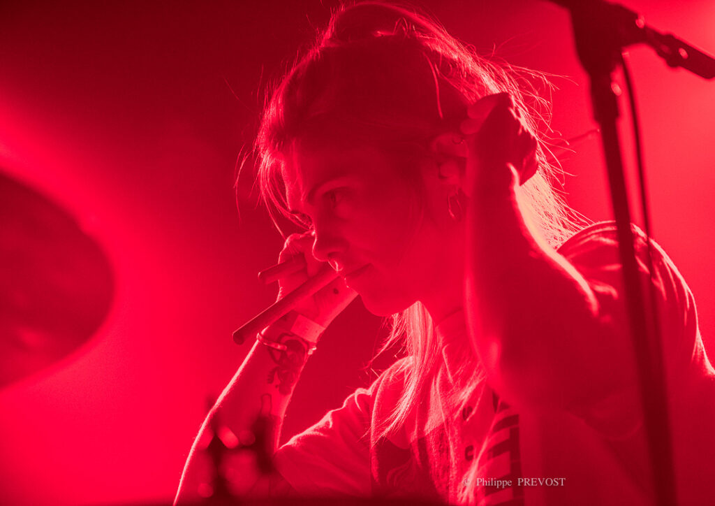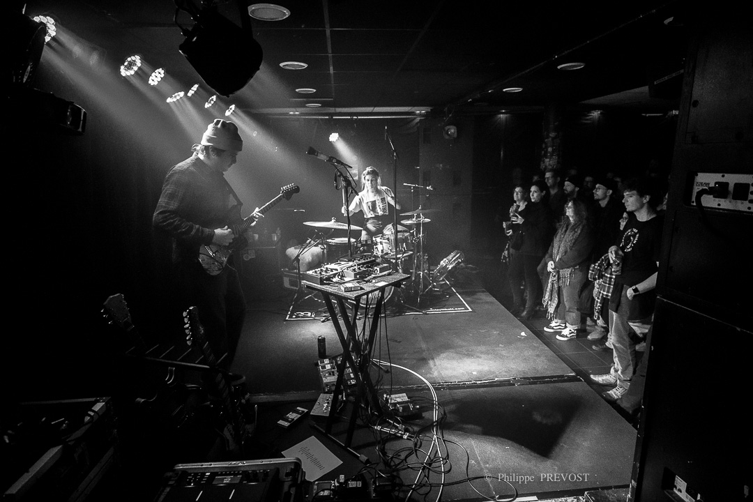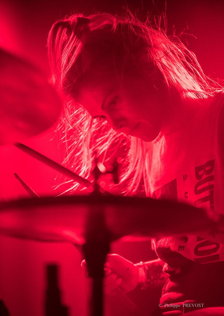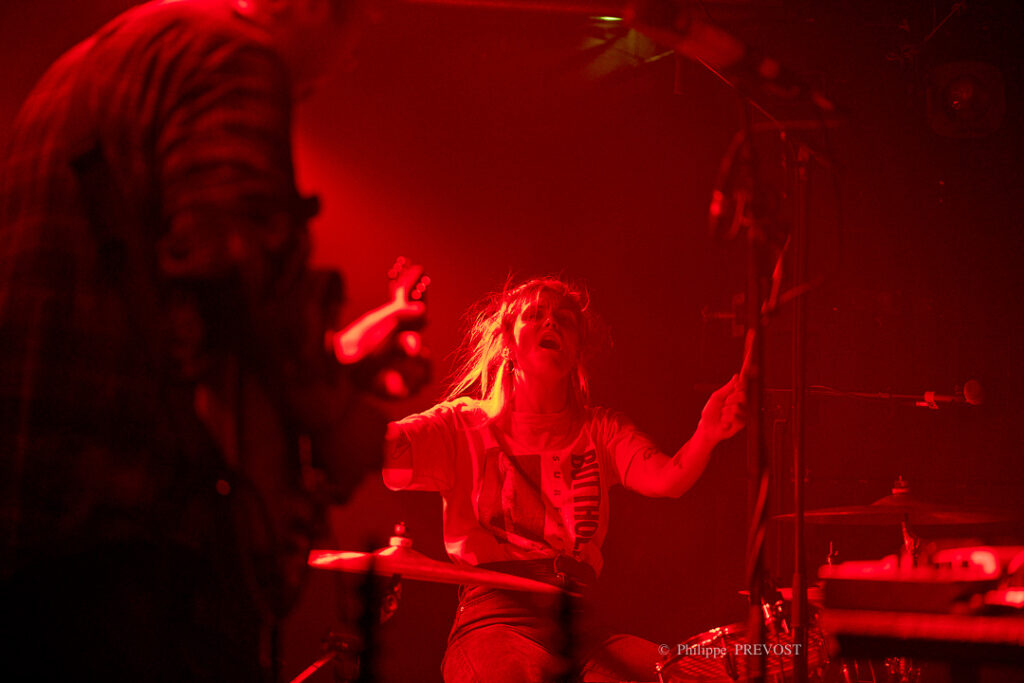 Débuter la semaine au Rock School Barbey est toujours une bonne idée pour partir du bon pied, et cette fois-ci, nous avions rendez-vous avec le combo GHOSTWOMAN qui présentait son excellent nouvel album « Welcome To The Civilized World ». Le duo, composé d’Evan Uschenko et d’Ille Van Dessel, explore une ambiance atmosphérique bien rougeoyante (couleurs naturelles des photos pour preuves) et rock vintage psychédélique absolument dingue. immédiatement, c’est une totale immersion dans leur musique hypnotique psych-grunge qui nous procure de purs frissons émotionnels, les guitares lacèrent l’atmosphère, les percussions cognent aux tripes, et cette voix captivante qui plane au-dessus de leur road trip chaotique. Bluffant..
