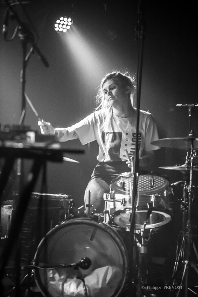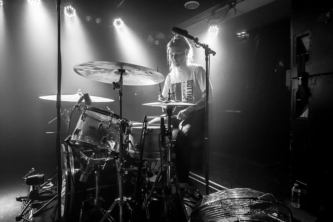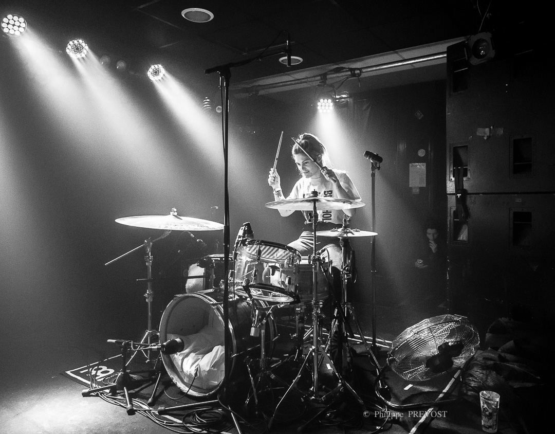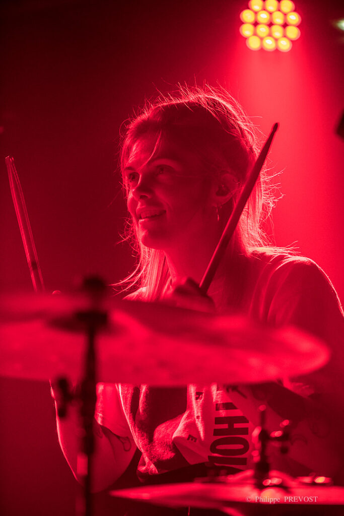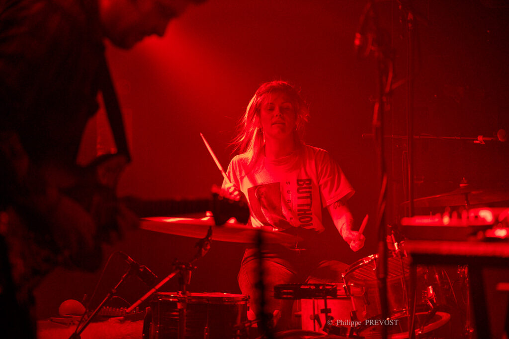 Débuter la semaine au Rock School Barbey est toujours une bonne idée pour partir du bon pied, et cette fois-ci, nous avions rendez-vous avec le combo GHOSTWOMAN qui présentait son excellent nouvel album « Welcome To The Civilized World ». Le duo, composé d’Evan Uschenko et d’Ille Van Dessel, explore une ambiance atmosphérique bien rougeoyante (couleurs naturelles des photos pour preuves) et rock vintage psychédélique absolument dingue. immédiatement, c’est une totale immersion dans leur musique hypnotique psych-grunge qui nous procure de purs frissons émotionnels, les guitares lacèrent l’atmosphère, les percussions cognent aux tripes, et cette voix captivante qui plane au-dessus de leur road trip chaotique. Bluffant..