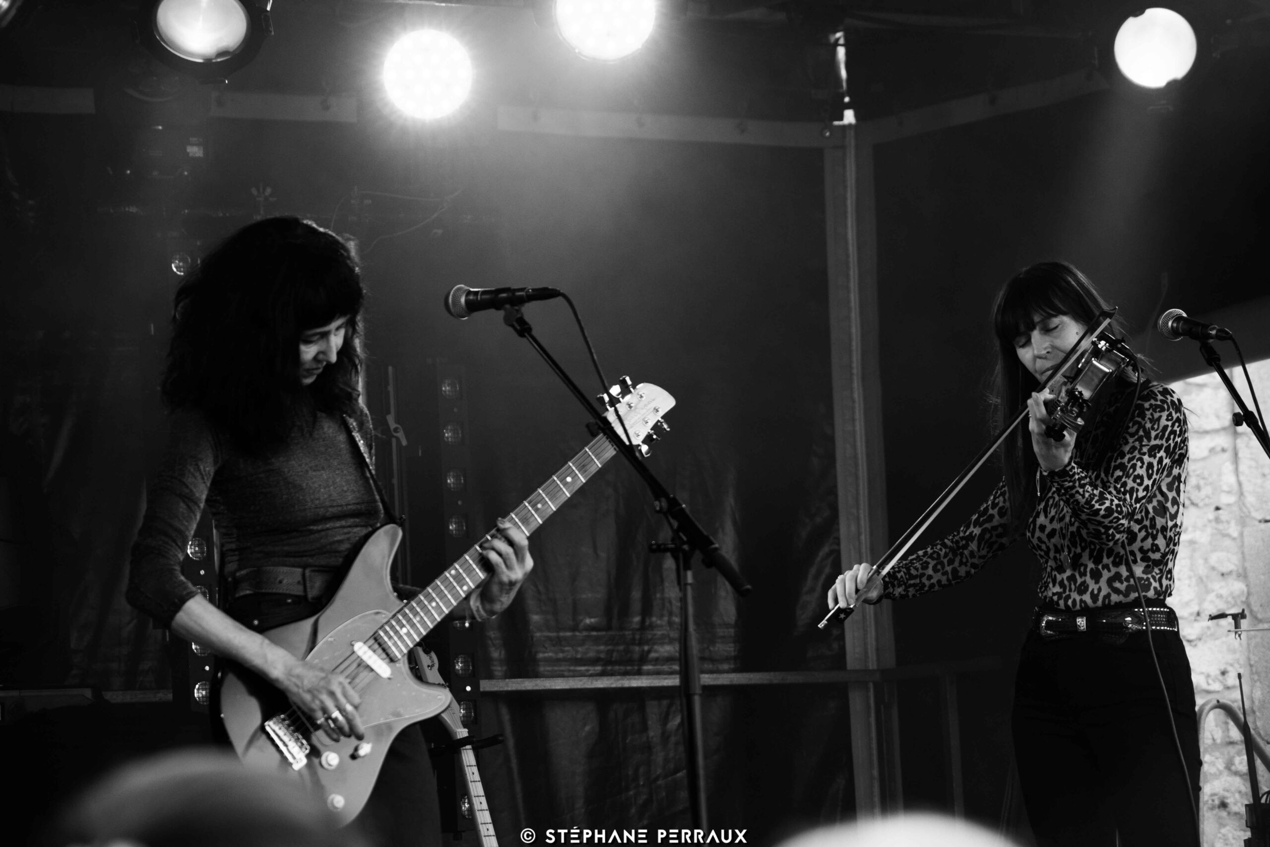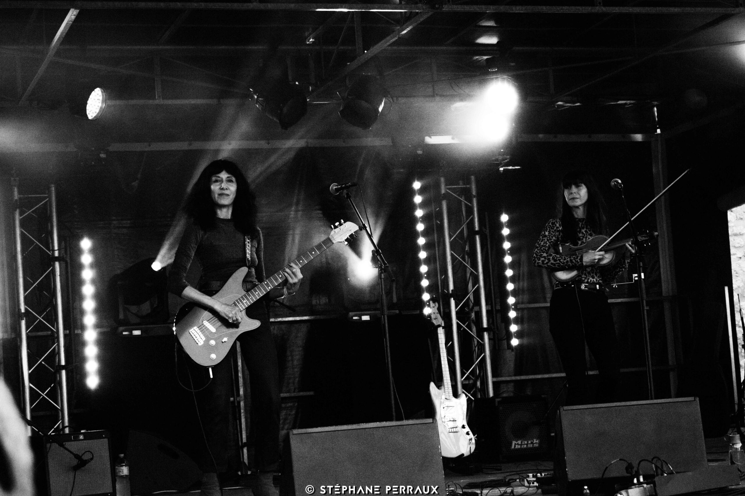 Quelques heures avant la grande messe piano-basse de Nick et Colin, une ambiance pour le moins studieuse s’installait déjà à la Corderie Royale à Rochefort avec la venue de ces deux âmes sœurs, qui s’accordent à merveille dans un rock expérimental, chants, guitares et violon. Immédiatement la complicité est palpable et l’osmose imparable. Devant un public aussi curieux qu’attentif, Delphine Ciampi et Anne Gouverneur enchaînent les titres, développant en profondeur un univers mystérieux, plein de beauté et d’une délicatesse infinie. Séduisant, intrigant et terriblement vibrant, il semblait impossible de ne pas succomber aux charmes électriques du duo.