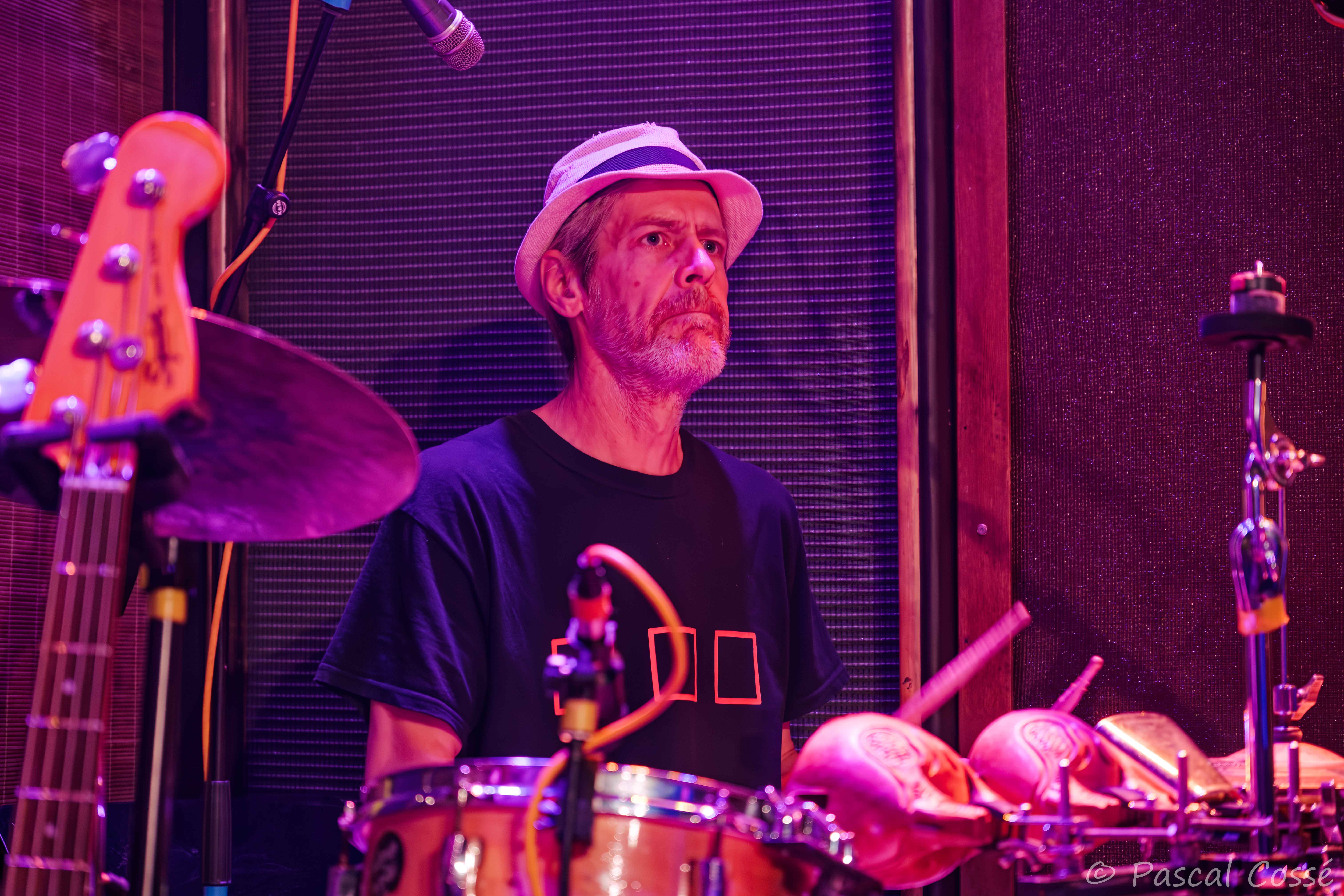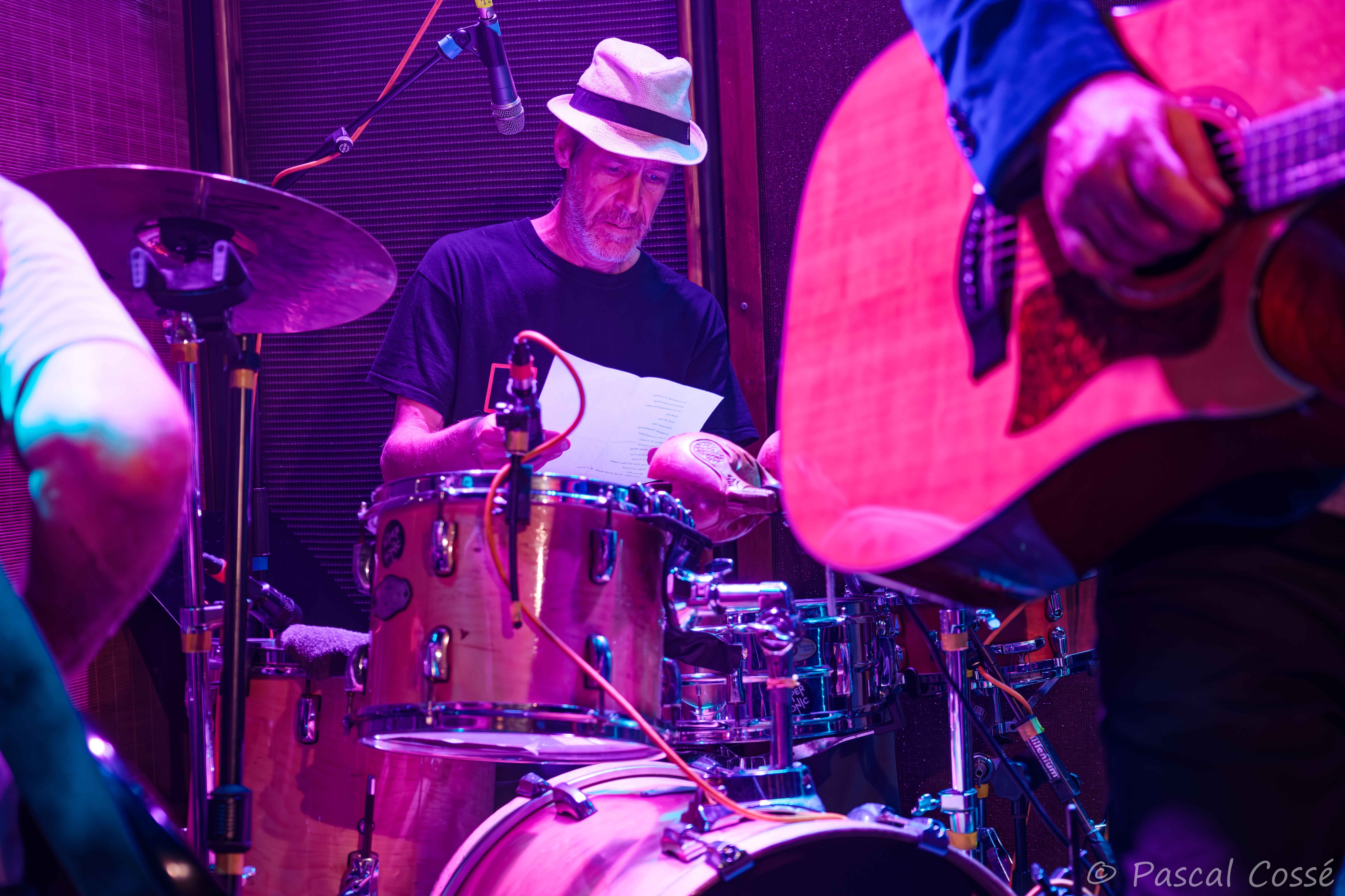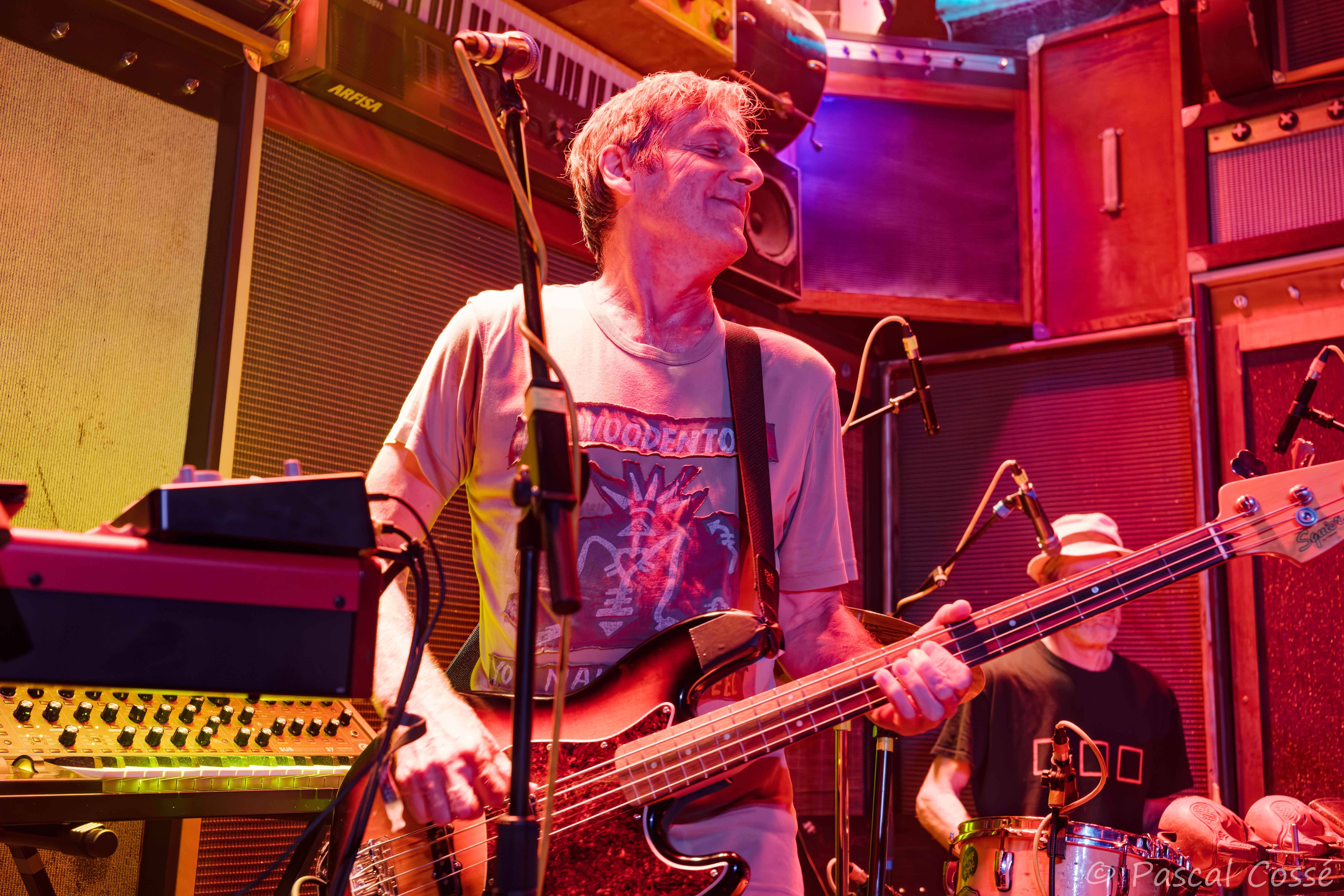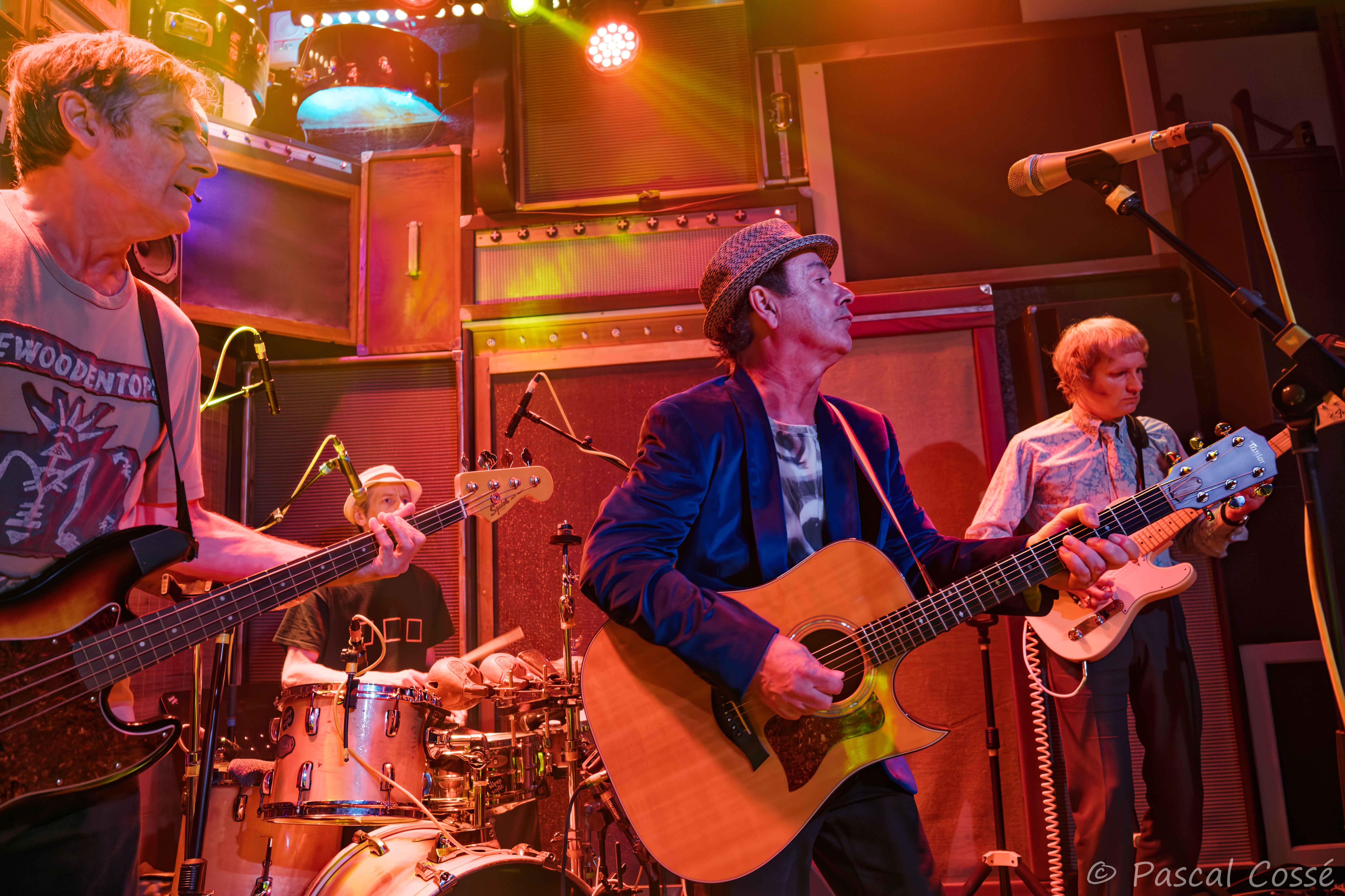 Marti Nelli, aka l’écrivain Olivier Martinelli, était l’invité de dernière minute car grand fan des Woodentops, pour une quinzaine de minutes et quelques titres issus de son roman « La vie dévorée » ayant pour thème son combat contre le cancer. Idéal pour chauffer l’ambiance ! Au final, c’était fort, beau, poétique et bien rock… Respect ! Mention spéciale pour la qualité du jeu de guitare de son ami Dominique Pascaud qui l’accompagnait, sans oublier le percussionniste.