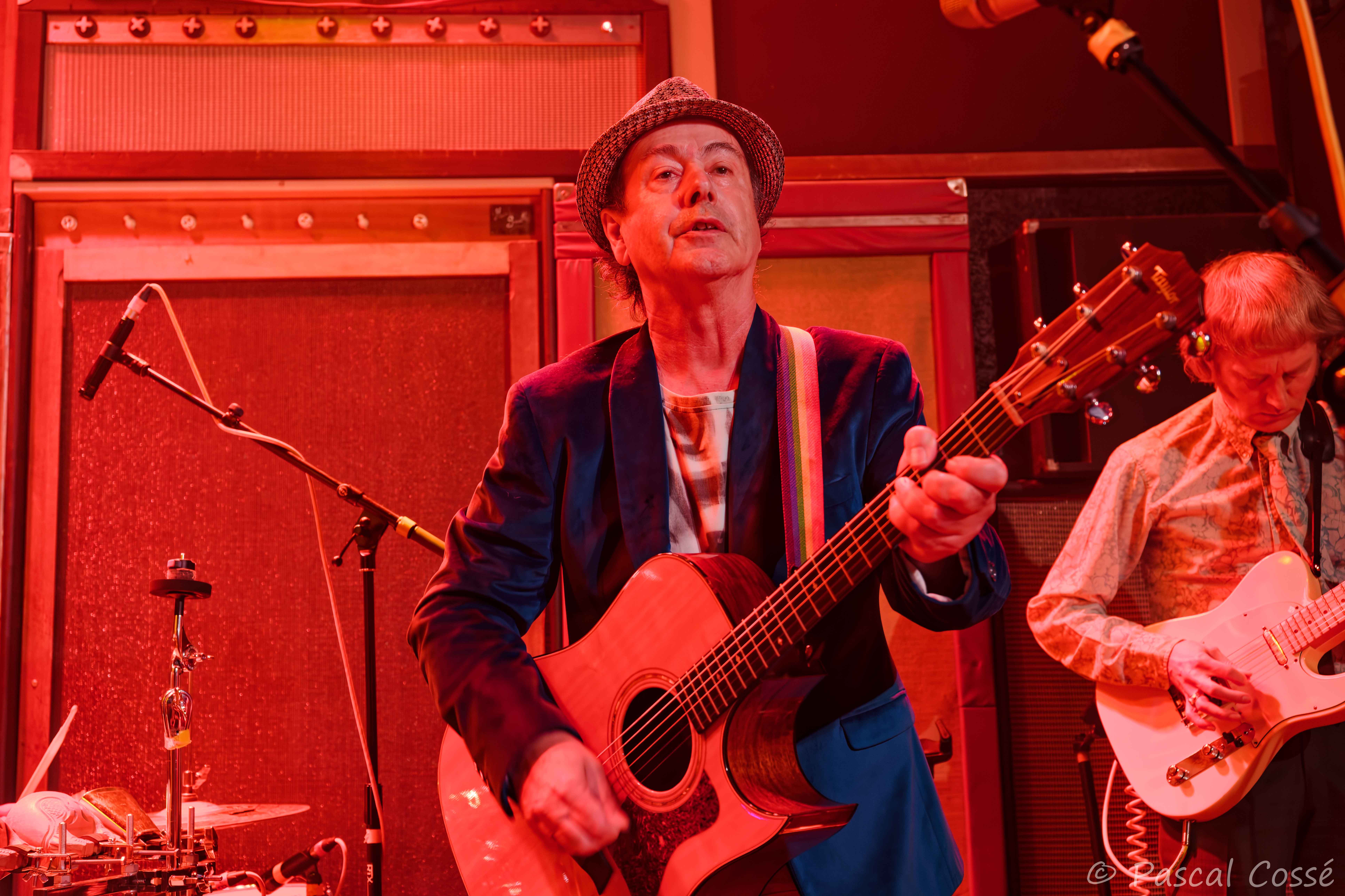Pour l’occasion, Rolo McGinty, en maître de cérémonie espiègle, compositeur, chanteur et guitariste et Frank de Freitas à la basse, membres originels, sont accompagnés d’un guitariste, d’un batteur et d’un clavier. Un quintette qui assure.