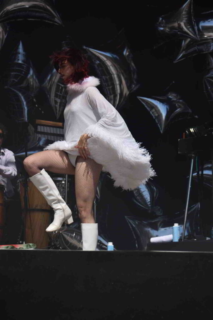 Installée près de Gand, en Belgique, mais originaire d’Anvers, Sylvie Kreusch nous accueille dans sa loge, en extérieur. Elle apprécie vivre en pleine nature et est visiblement sous le charme du site. Longtemps indépendante, elle a signé avec Sony son nouvel album, sorti l’an passé. C’est donc deuxième en solo, après une expérience réussie avec Warhaus, le groupe formé par le leader du groupe Balthazar, Maarten Devoldere. Logiquement membre à part entière de l’excellente scène belge, dont la diversité n’est plus à démontrer, elle se sent inspirée par la communauté d’artistes avec qui elle travaille parfois.  « En Belgique, nous n’avons pas uniquement un seul son. Et beaucoup de bons groupes sont bien connus à l’étranger. »